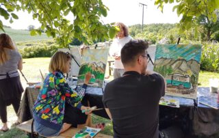 Gerne komme ich aber auch mit meinen sieben Sachen (Tischstaffeleien, Farben etc.) in einer von Euch gewählten Location oder zu Euch nach Hause.