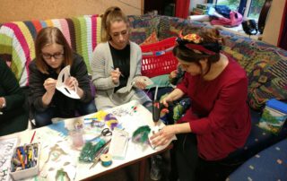 In meinen kunstpädagogischen Workshops lernst Du in warmherziger, kreativer und wertschätzender Atmosphäre, bei schöner Musik und lieber Gesellschaft Deine kreativen Potentiale zu entfalten. Du lernst mutig zu sein im künstlerischen Gestalten, neues zu lernen und mit unterschiedlichen Materialien zu experimentieren. Manchmal verfolgen wir ein bestimmtes Ziel, ein anderes Mal geht es darum einfach gemeinsam in einen kreativen Flowzustand zu kommen.